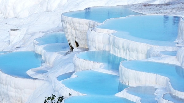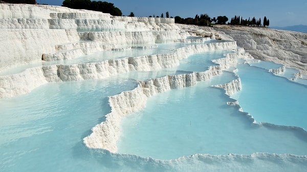 A natural marvel in Turkey, Pamukkale is well-known for its hot springs, white terraces made of travertine mineral deposits, and old Roman remains. Visitors come from all over the world to see its magnificent white cliffs and hot springs because of its fame.